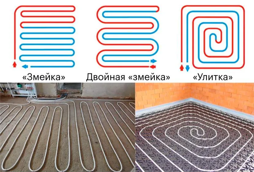 Схемы укладки греющего кабеля теплого полаИсточник kaminia.ru