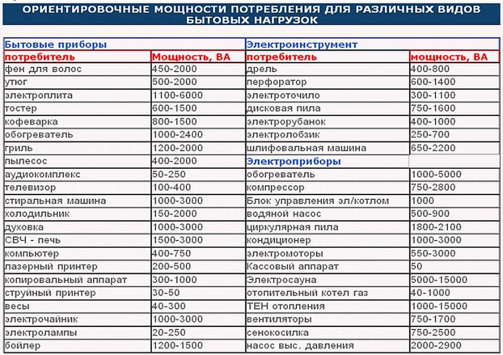 В случае, если узнать нужную информацию не удается (на табличке затерлась надпись или бытовой техники еще нет) можно узнать приблизительно, какую мощность имеют самые распространенные бытовые приборы. Все эти данные реально отыскать в таблице. В основном, электроприборы стандартизированы по потребляемой мощности и особого разброса данных нет.