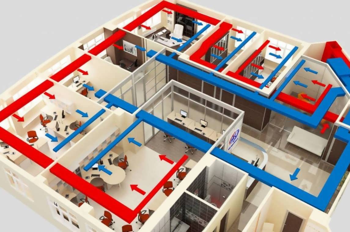Практически любое здание в современной архитектуре может быть спроектировано с несколькими уровнями сложности. Офисные здания не являются исключением, так как в них может находиться множество вспомогательных помещений, требующих отдельного подхода к вентиляционным каналам.