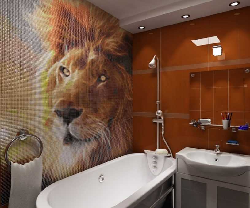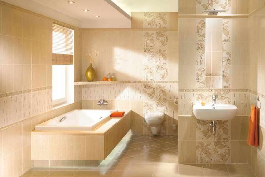 - Использование для облицовки готовых коллекций в ванную комнату: с орнаментом, декорированием, необычным расположением, пересекающимся швом.