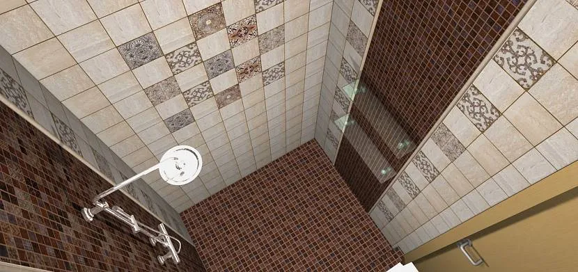 Орнамент в ванной комнате с коричневой и узорчатой плиткойИсточник design-vannoy.com