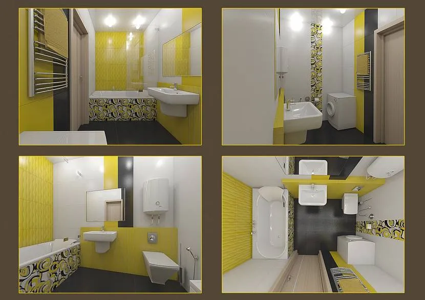 Вертикальные полосы в ванной комнате контрастных цветовИсточник 3dlancer.net