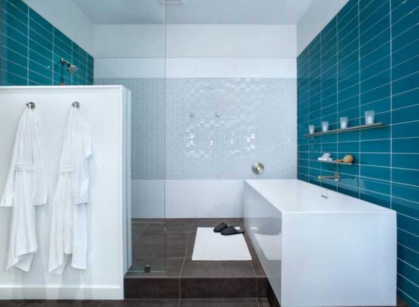 При выборе покрытия стоит учитывать и особенности помещения. Так, например, кафель холодных оттенков (голубой, зеленый) лучше использовать в светлых, теплых помещения. Холодные оттенки лучше разбавить теплыми тонами: бежевым, желтым.