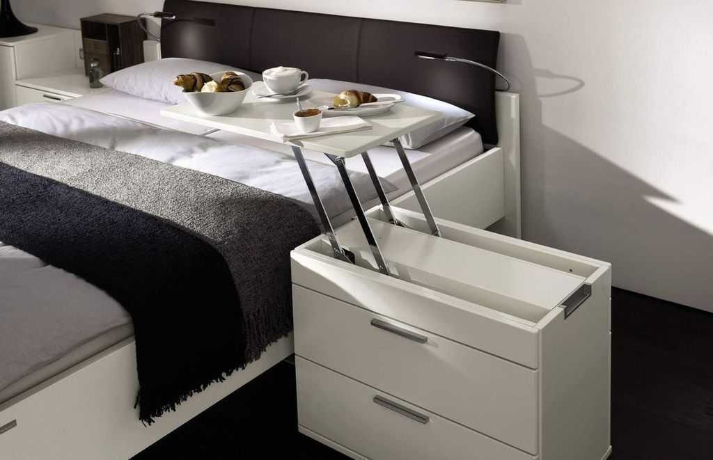 Тумба-трансформер может использоваться в качестве столика для завтрака или работы в кровати