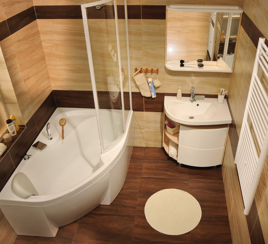 Установка угловой ванны позволяет освободить дополнительное пространство.