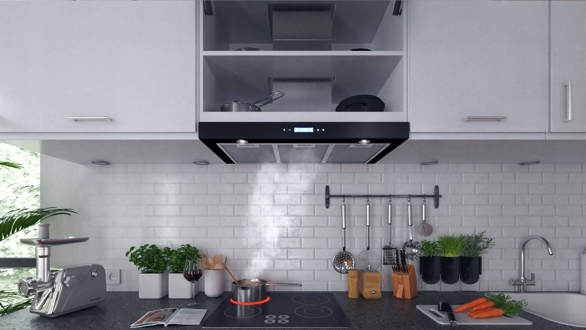 Единственное исключение из правил – кухни с низкими потолками, где выдержать рекомендованное расстояние между варочной поверхностью и вытяжкой не представляется возможным.