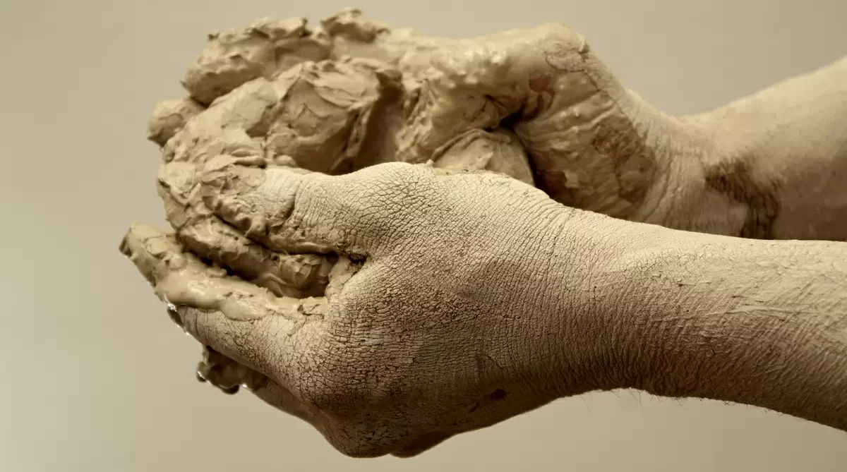Итак, из глины убрать мусор, корни, траву, камни, залить водой, размешать. Вода должна быть чистой и мягкой, лучше всего подойдет дождевая, её и использовали в старину. Мягкая вода добывается из скважин. Оставить на пару-тройку дней, необходимо периодически размешивать. Если есть ощущение, что глина размокла, взяла сколько было нужно влаги, можно приступить к созданию смеси. Хорошо размешать, можно разминать руками, затем добавить песок и ещё раз размешать. Довести до тестообразного состояния.