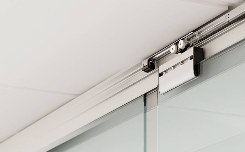 - Имеющие верхнюю подвеску. Роль несущей конструкции берет на себя направляющая сверху. Именно на нее передается основной вес полотна через ролики. По нижней в это время движется обычный ролик, как бы предупреждающий сход двери. В отдельных случаях для этого может использоваться шип, который также находится в нижней части.