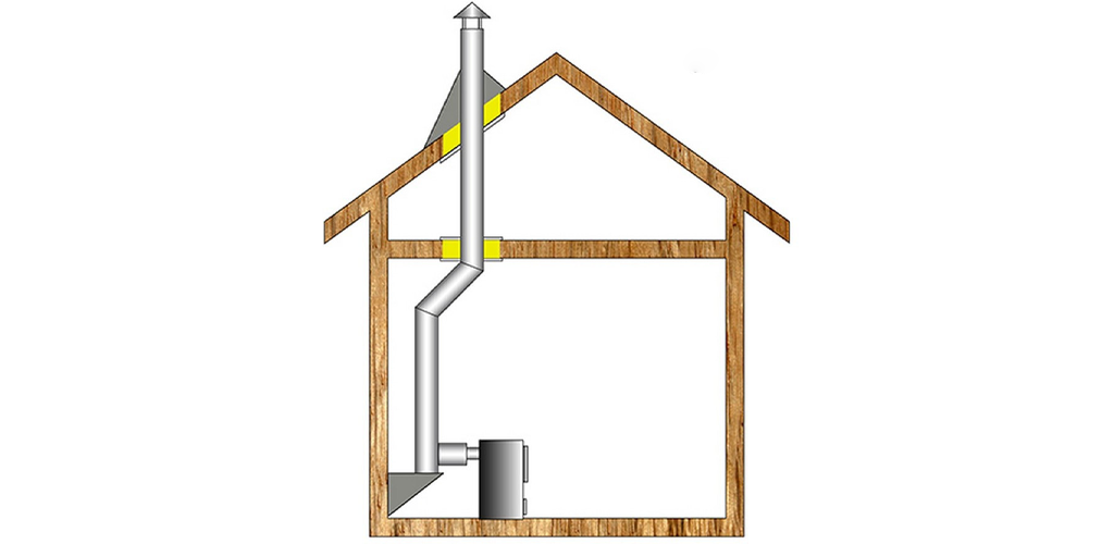 При естественном типе, выходящие трубы должны возвышаться над верхней точкой крыши приблизительно на 0,7 м. Верхнее отверстие покрывают специальным зонтиком, защищающим от попадания осадков, животных или птиц.