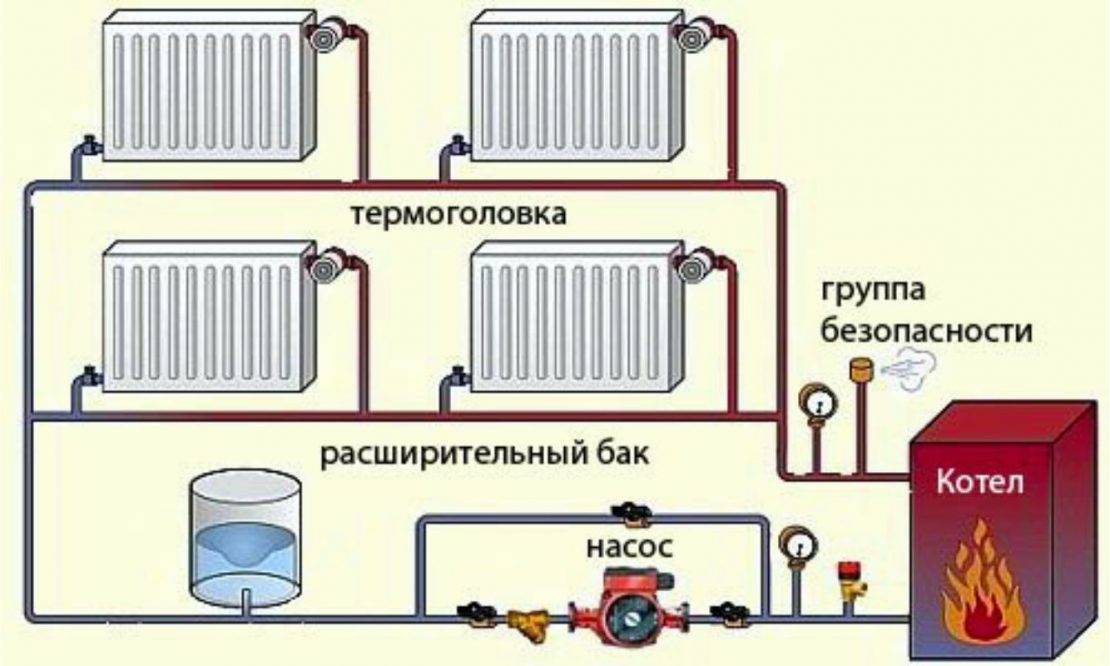 Основное правило любой системы обогрева — замкнутость сети. В простом представлении схема сети отопления выглядит как некое кольцо из трубных соединений, в которых течет вода, постоянно нагреваемая от котла. Этот котел находится в постоянной работе, чтобы в любой последующий цикл течения воды по трубам она не остывала.