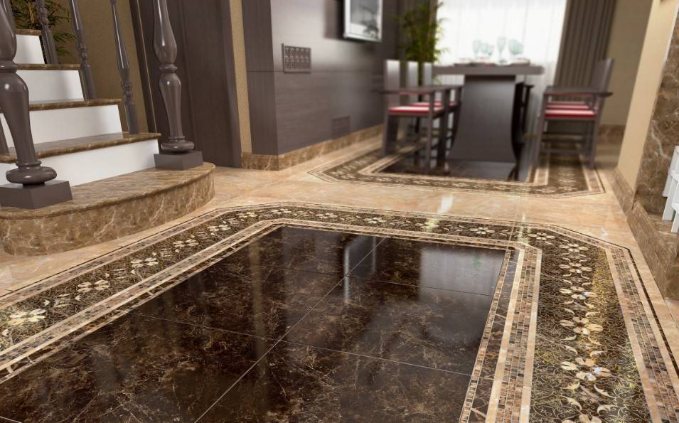Мрамор – благородный природный материал и к тому же очень прочный и износостойкий. Часто выбор напольного покрытия определяется не только прихотью хозяев, но и необходимостью. К примеру, в прихожей пол испытывает нагрузки от поступи в тяжелой обуви, на него стекает влага с одежды и обуви, зонтов. Здесь мрамор, как ни один другой материал, справиться с задачей. Главный его недостаток – высокая стоимость, зато первые признаки его разрушения вы можете заметить через 25-75 лет.