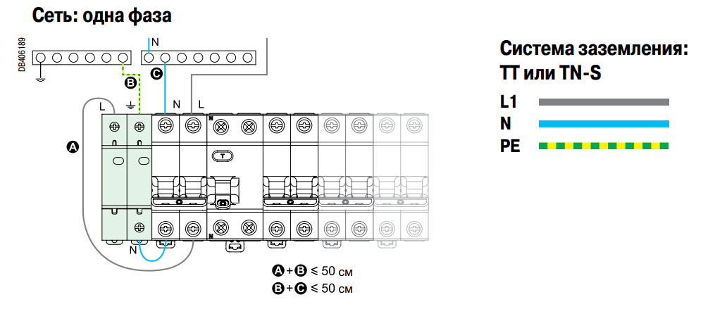 А вот подобные схемы для УЗИП от ABB OVR. Однофазный вариант: