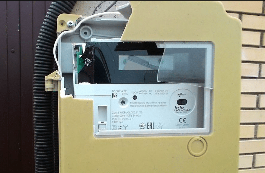 Чаще всего механическим повреждениям подвержены электросчётчики, установленные вне объекта учёта, то есть в подъездах и на улице. Вандальные действия могут привести к выходу из строя счётчика. В этом случае нужно срочно обращаться в энергосбытовую компанию, так как внешние ПУ относятся к её ведению и числятся на её балансе.