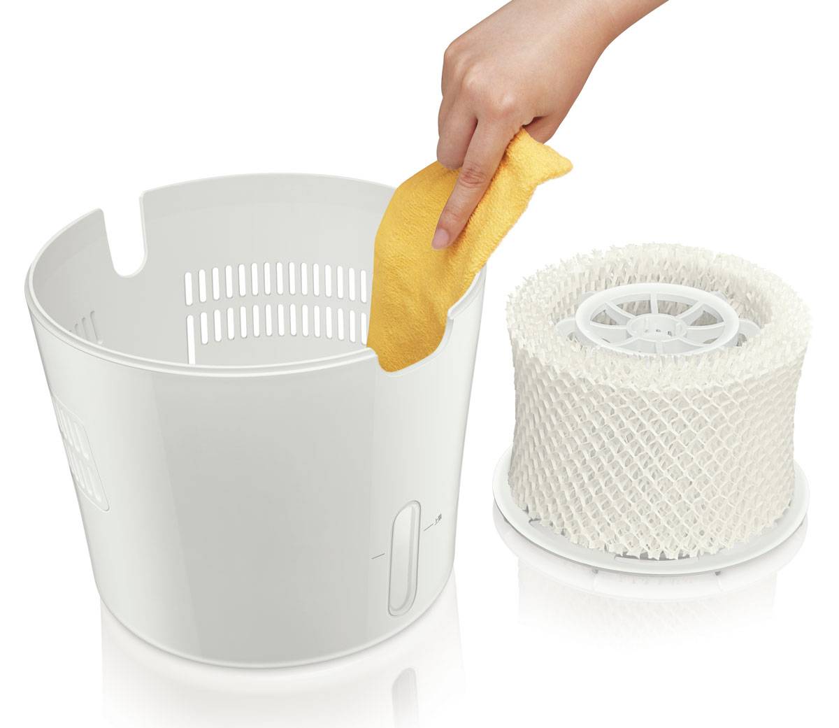 Бак для воды или емкость, контактирующую с жидкостью, рекомендуется промывать ежедневно Постоянная эксплуатация прибора ведет к его загрязнению. Из-за этого возникают неисправности и сокращается срок службы. Помимо ежедневного быстрого ухода за увлажнителем, необходимо выполнять основательную чистку и замену комплектующих.