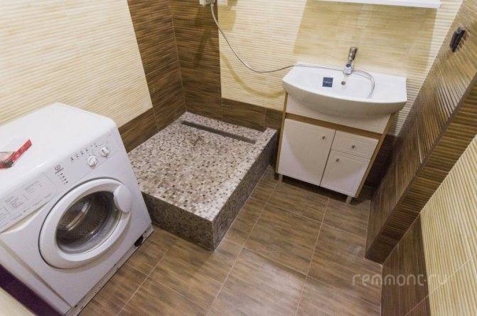 Замена громоздкой ванны на компактную душевую кабину позволит выделить место для стиральной машинки