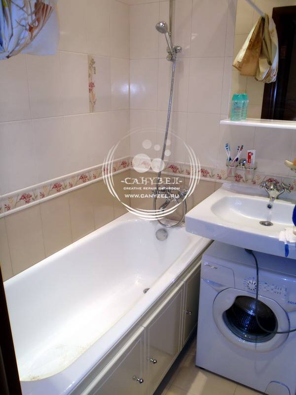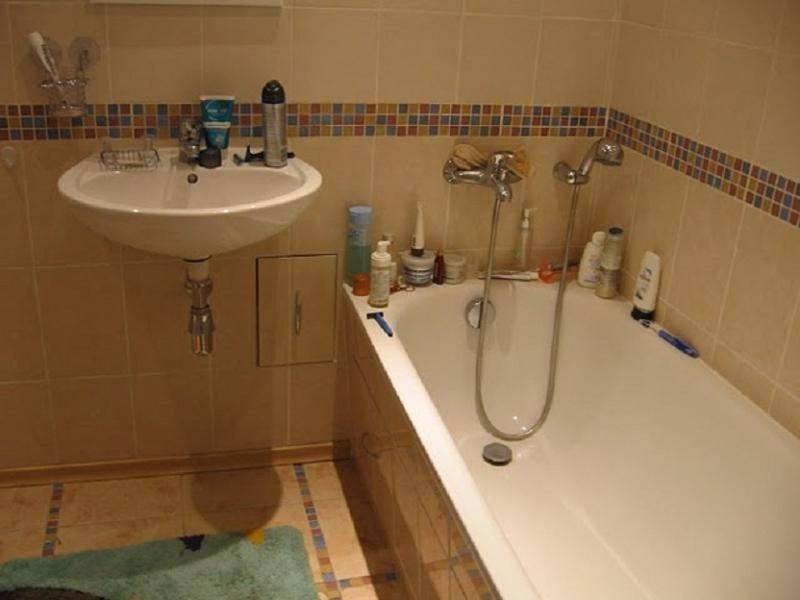 Еще один факт, который способен вызвать серьезные препятствия при проведении в ванной брежневки ремонта и облицовочных работ, малые размеры, которые характерны для данного типа помещений. Из-за мизерной площади число возможных способов установки сантехнических и электрических приборов сводится к минимальному. Причем, пытаясь хоть как-то преобразовать ванную комнату с целью расширения ее пространства путем перемены мест у бытовой техники и сантехники, приходится делать крупные капиталовложения в приобретение электроприборов либо нестандартных устройств сантехники. Вполне недешево придется заплатить и вознаграждение за труды специалистов, которые будут помогать разрабатывать и воплощать в условия реальности нетиповой проект ванной комнаты.