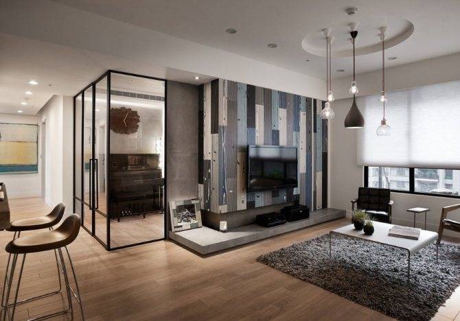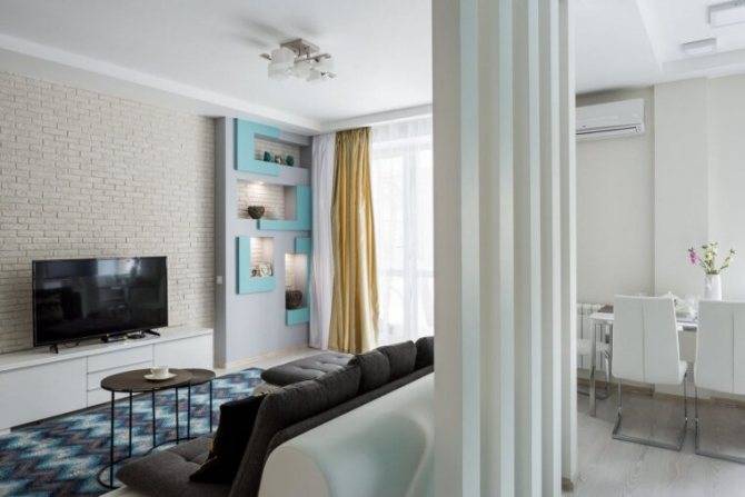 На фото результат перепланировки двухкомнатной брежневки – комфортная квартира-студия в современном стиле