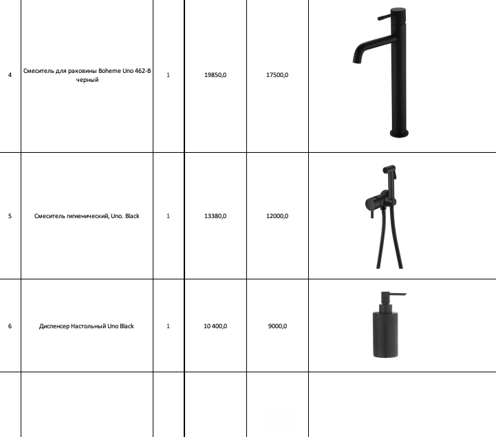 Смеситель и душевая стойка. Мы остановились на серии Boheme Uno. Оценили минималистичный дизайн, красивый матовый оттенок черного и просто удобство использования. Все краны открывались мягко и плавно, регулировка показалась удобной. Факт, что такие смесители придется чаще мыть, нас не смущает.