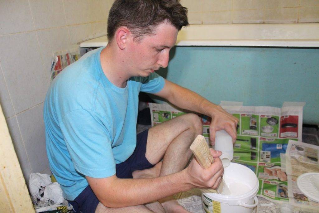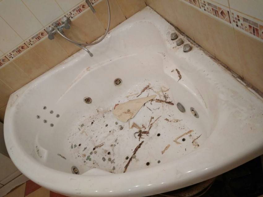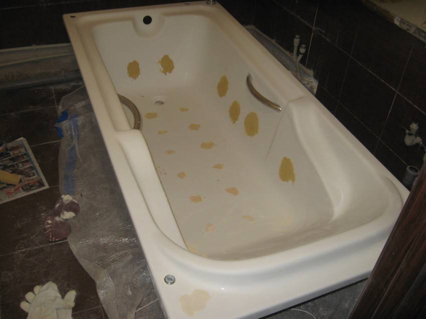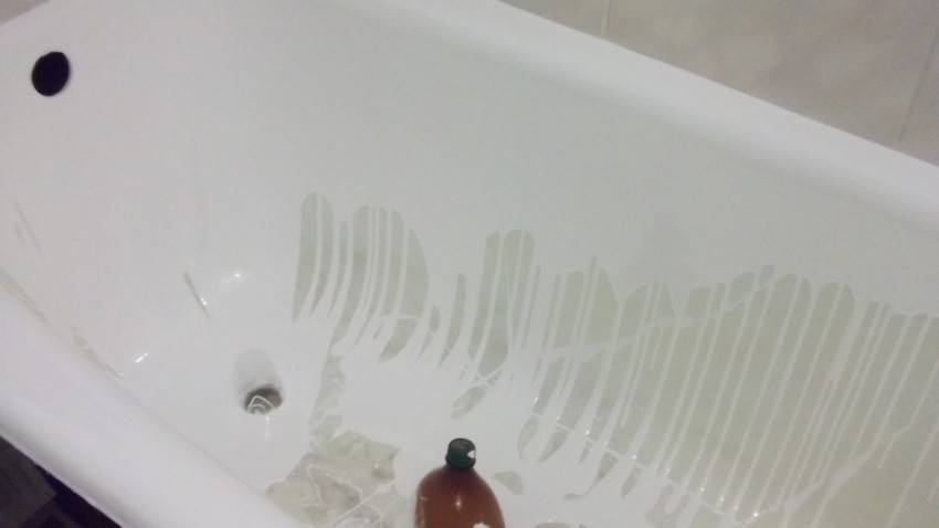 - Внутреннюю поверхность ванны обезжирить кислотными моющими средствами, а затем опять тщательно омыть проточной водой. После того, как чаша очищена от жира, трогать ее руками нельзя.