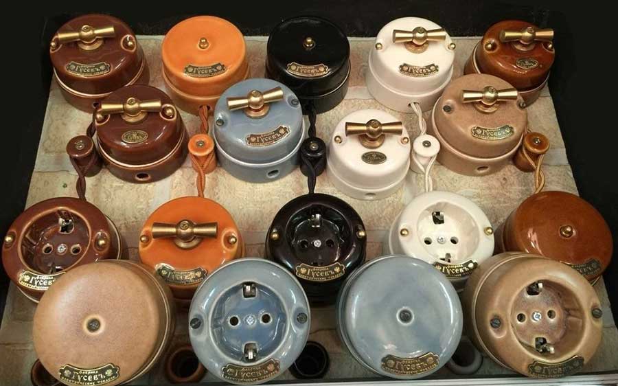Розетки, кабели и прочие изделия в стиле ретро выпускают многие компании. Рекомендуют приобретать весь набор у одного производителя, чтобы внешне проводка представляла собой единую гармоничную композицию.