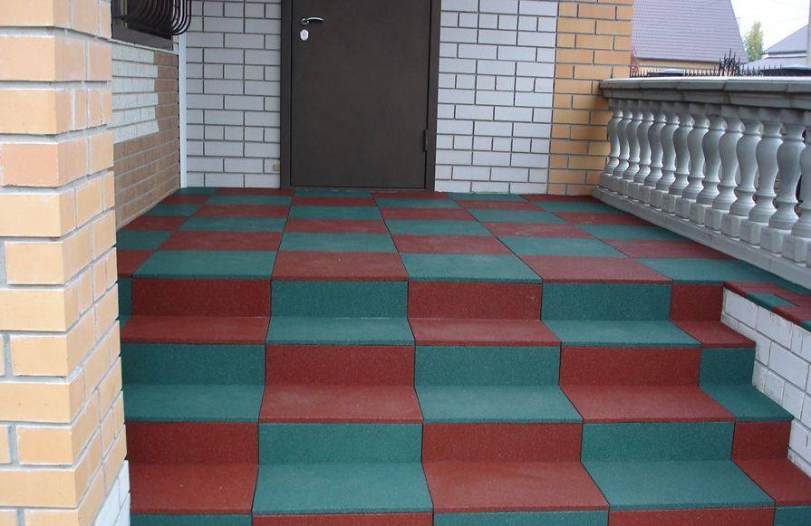 Такой материал можно использовать для покрытия крыльца, а также для изготовления полосок на ступени.