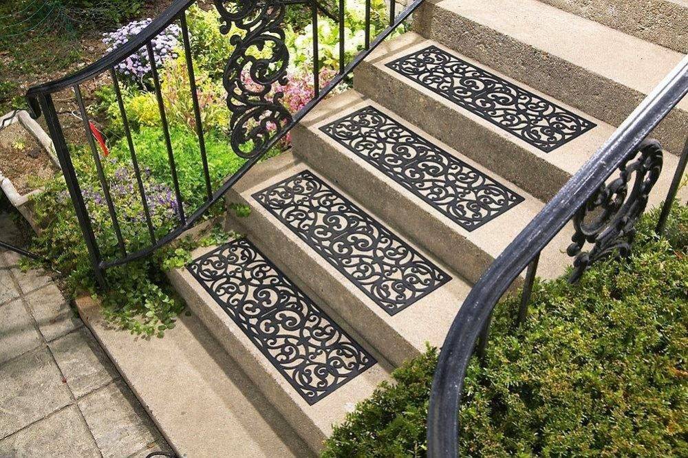 Даже такое простое изделие, как коврик, может стать элементом декорирования крылечной конструкции.