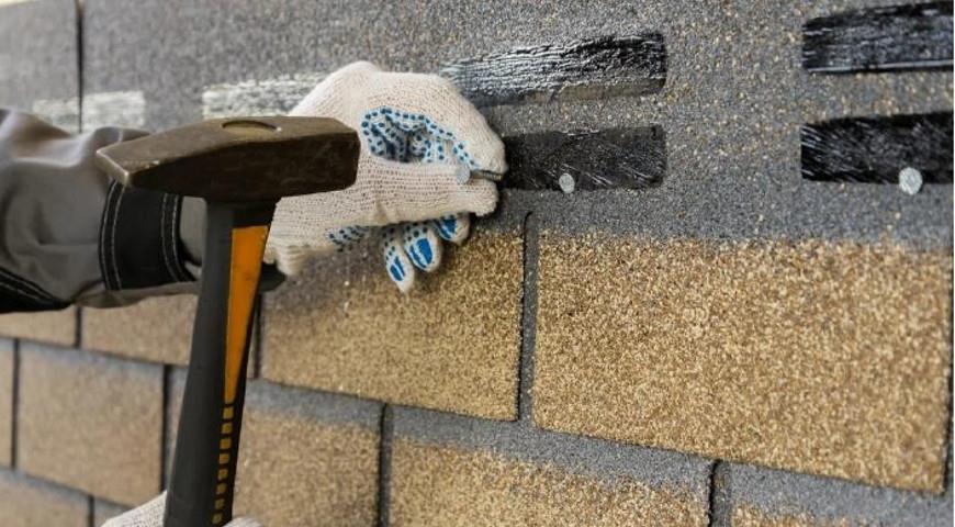 Для обеспечения надежной фиксации в процессе монтажа необходимо обеспечить склеивание фасадных плиток между собой. С тыльной стороны материала удаляется защитная пленка, закрывающая клеевой слой, при необходимости этот слой прогревается строительным феном и прижимается к нижнему ряду.
