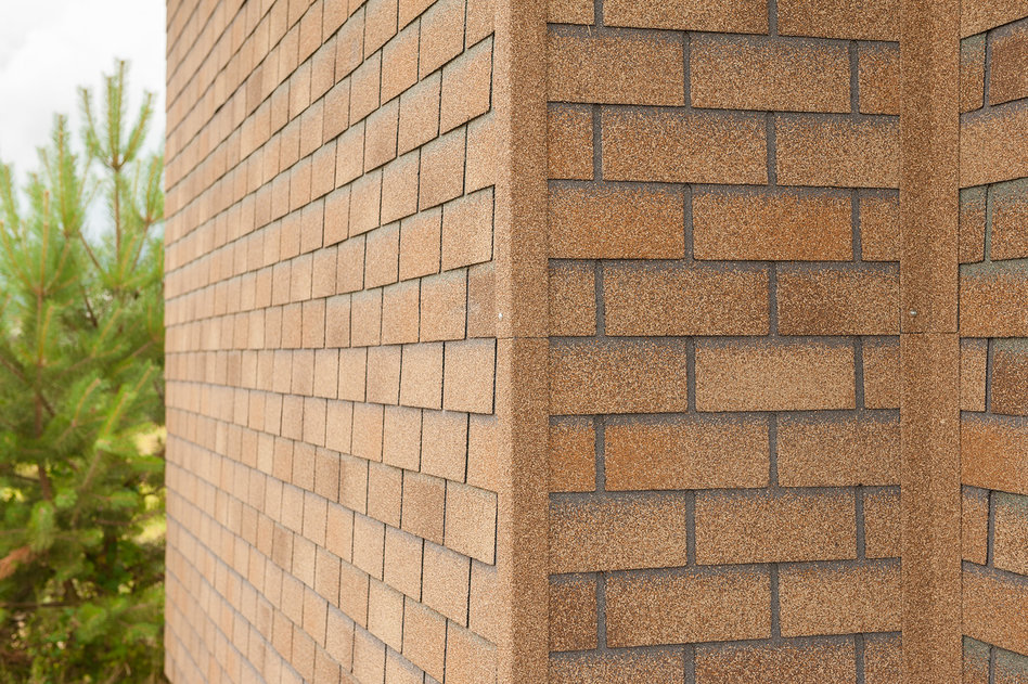 Легкость и простота монтажа обусловлены податливостью и гибкостью материала. Из всех инструментов для раскроя и подрезки плиток застройщику требуется только острый кровельный нож. Это свойство фасадной плитки позволяет легко создавать различные дизайнерские решения благодаря широкому спектру цветовых оттенков и их комбинации между собой.