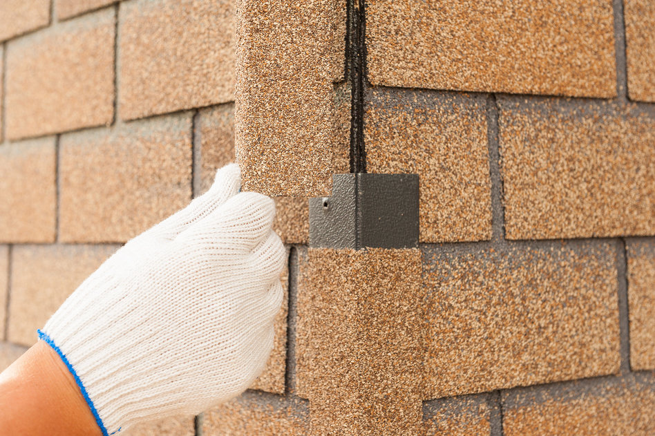 Для обеспечения надежной фиксации в процессе монтажа необходимо обеспечить склеивание фасадных плиток между собой. С тыльной стороны материала удаляется защитная пленка, закрывающая клеевой слой, при необходимости этот слой прогревается строительным феном и прижимается к нижнему ряду.