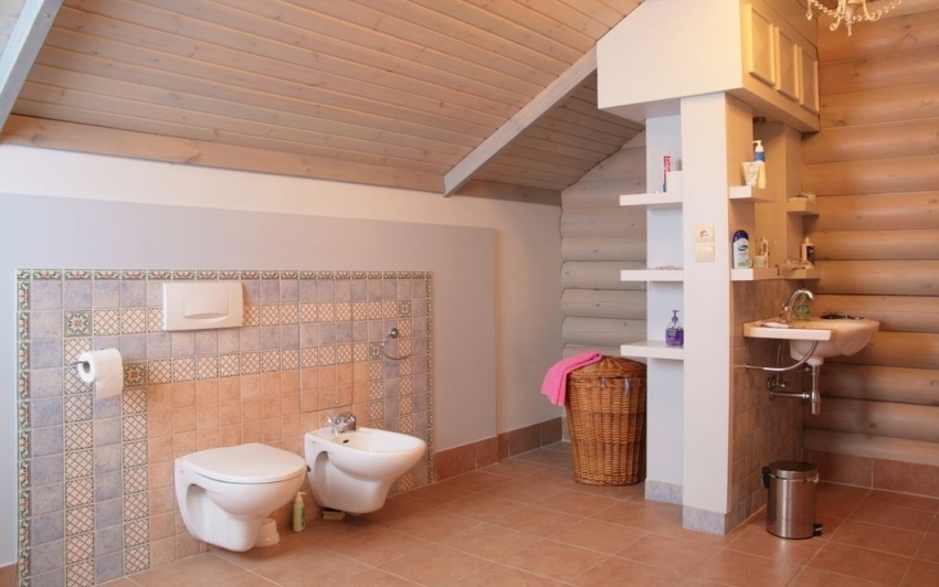 Выбирая сантехнические приборы, нужно помнить про уже упоминавшуюся усадку деревянного дома. Чтобы предотвратить разгерметизацию приборов и следующую за ней протечку, стоит остановить выбор на подвесных унитазах и биде.