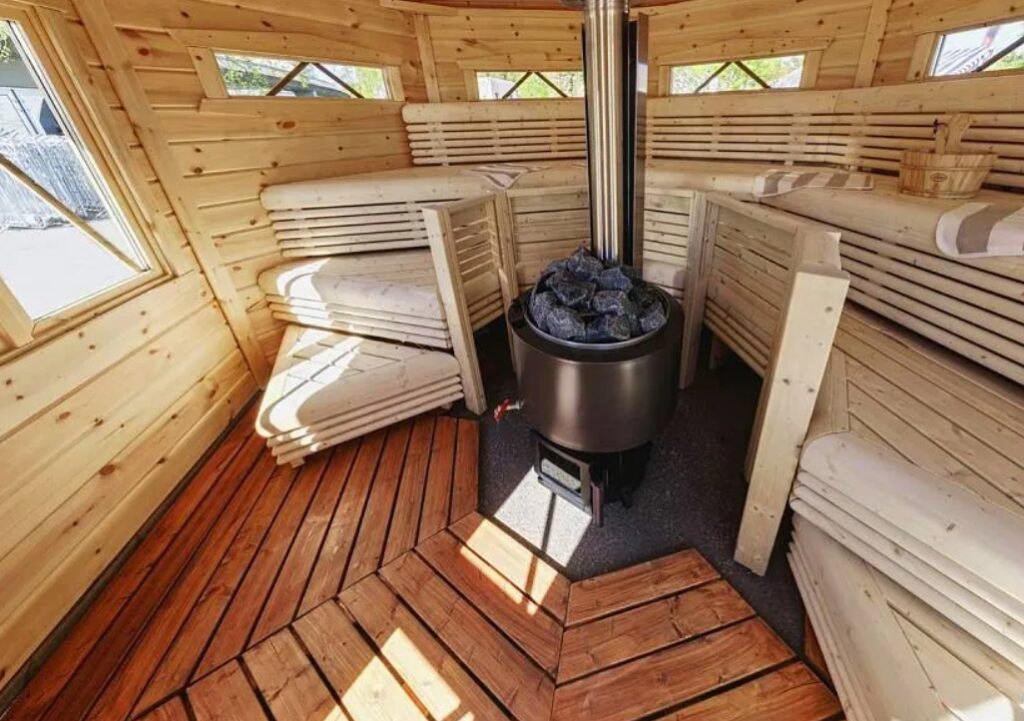 - Двустенный дымоход сразу подключён к каменке.