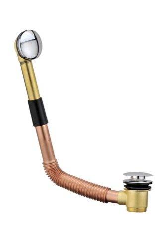 - Каждая сливная система для ванной оборудована патрубком для присоединения сифона к канализационным трубам. Патрубок бывает жестким или мягким гофрированным. Жесткий более надежен в эксплуатации, а гофрированный намного удобнее монтировать.