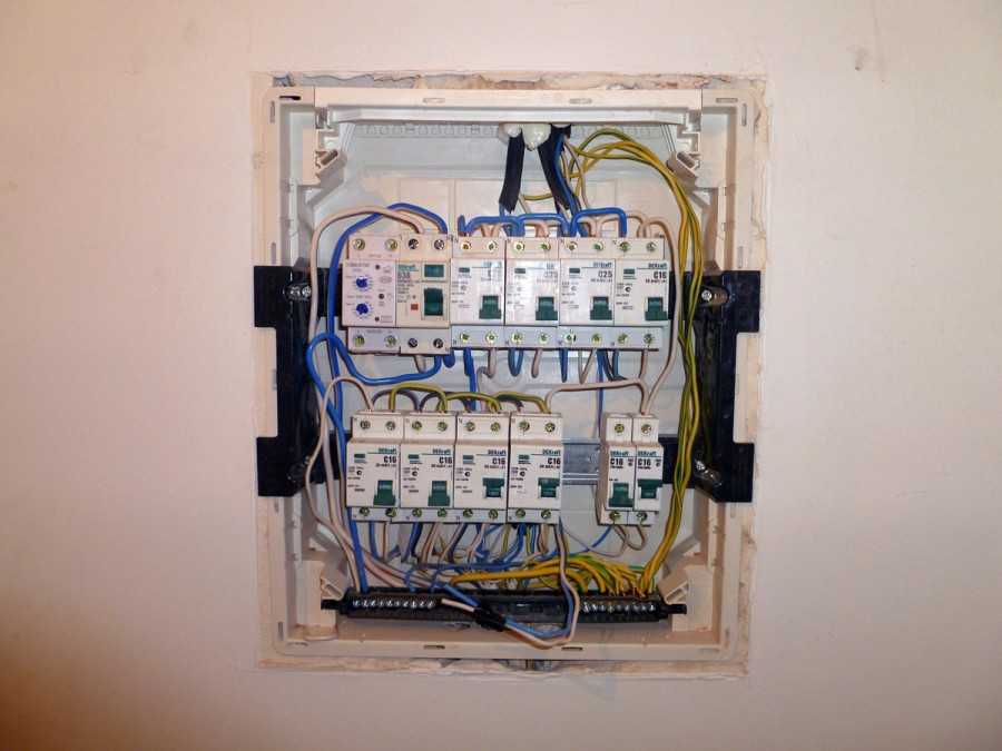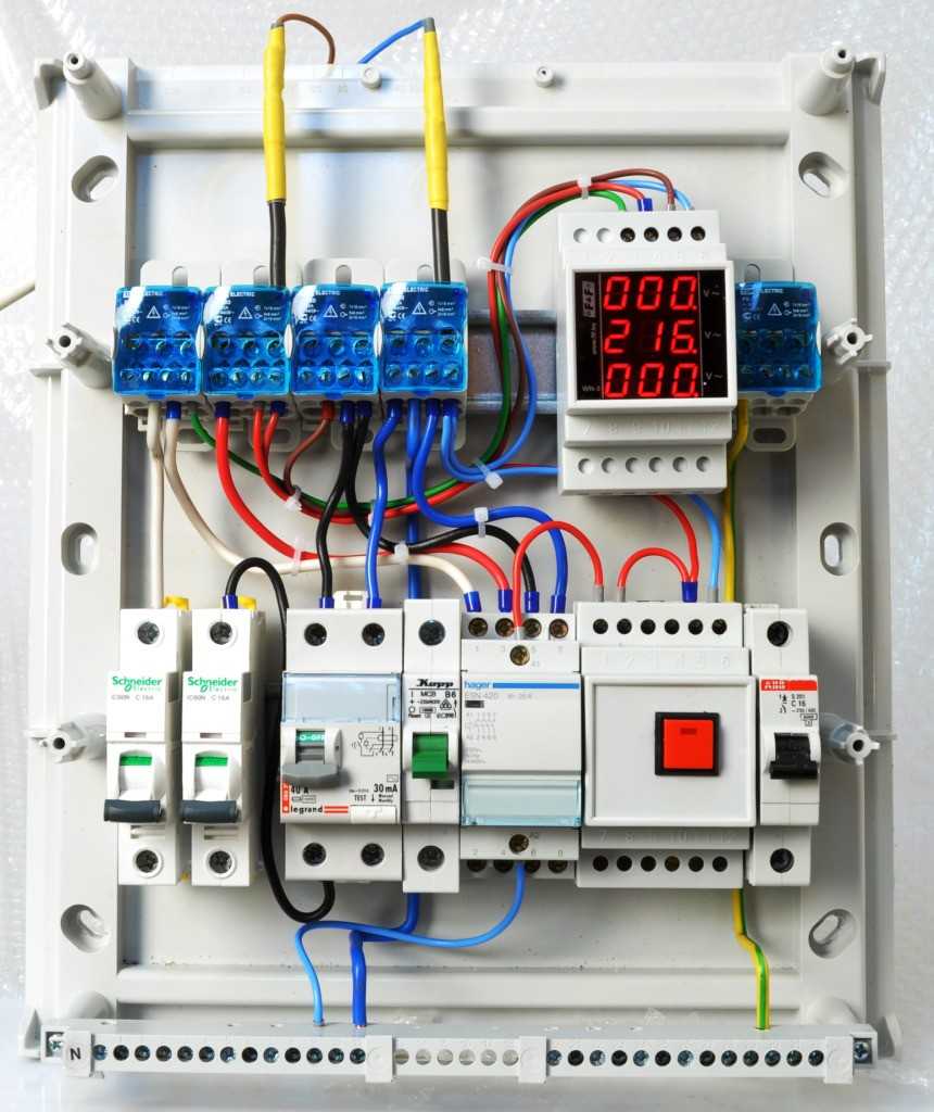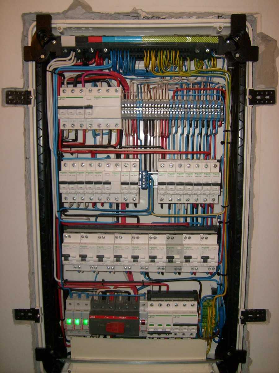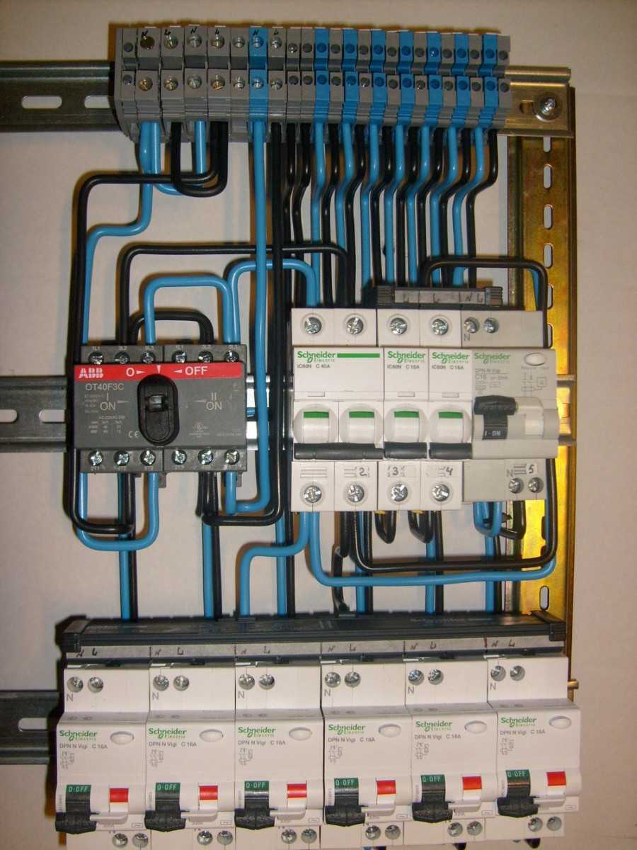В современных квартирах полно электроприборов и всяческих устройств, так что электрощит может занимать площадь стены около квадратного метра, вмещать счетчик, десяток автоматических выключателей, нулевую рабочую и защитную шину и прочие важные элементы. Но при компактной «насадке» их на DIN-рейку в укромном месте не нарушается интерьер квартиры, не создается неудобств для жильцов.