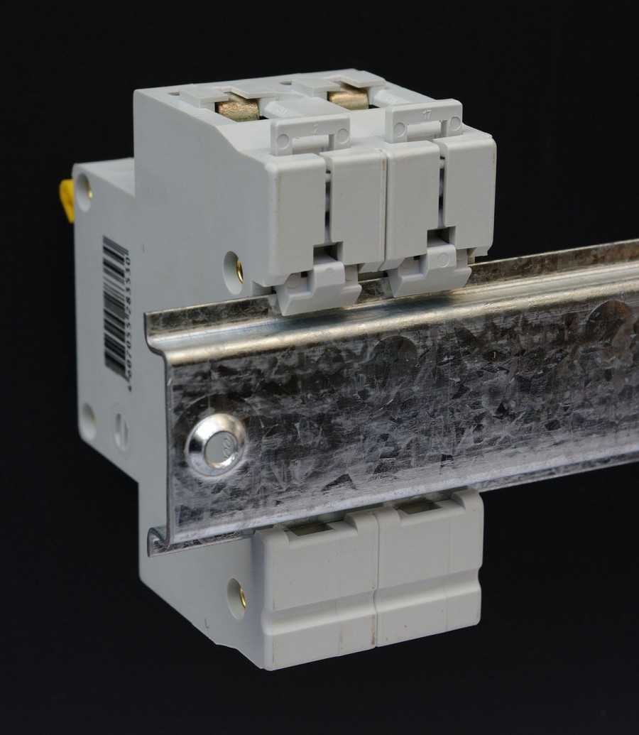 На сегодняшний день DIN-рейка является незаменимым элементом современных электрощитов, как зарубежных, так и отечественных производителей. Конструктивно, din-рейка представляет собой профиль из металла, имеющий особую форму. Как мы уже отмечали, главной и единственной функцией din-рейки является компактное, надежное и быстрое размещение на ней модульного электрооборудования (автоматические выключатели, УЗО, и пр.).