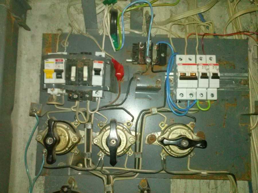 Вот один из примеров небрежной установки. На фото Вы видите вполне реальный этажный электрощит советского производства (разработка ленинградского треста «Электромонтаж-55») в одном из многоквартирных домов посёлка Старая Малукса Кировского района Ленинградской области.