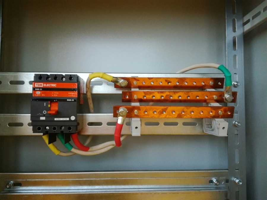 Для присоединения проводов к защитным устройствам, необходимо предварительно заготовить два кабеля, которые идут один к источнику питания, а другой от него. Первым подключается кабель, который питает электролинию.