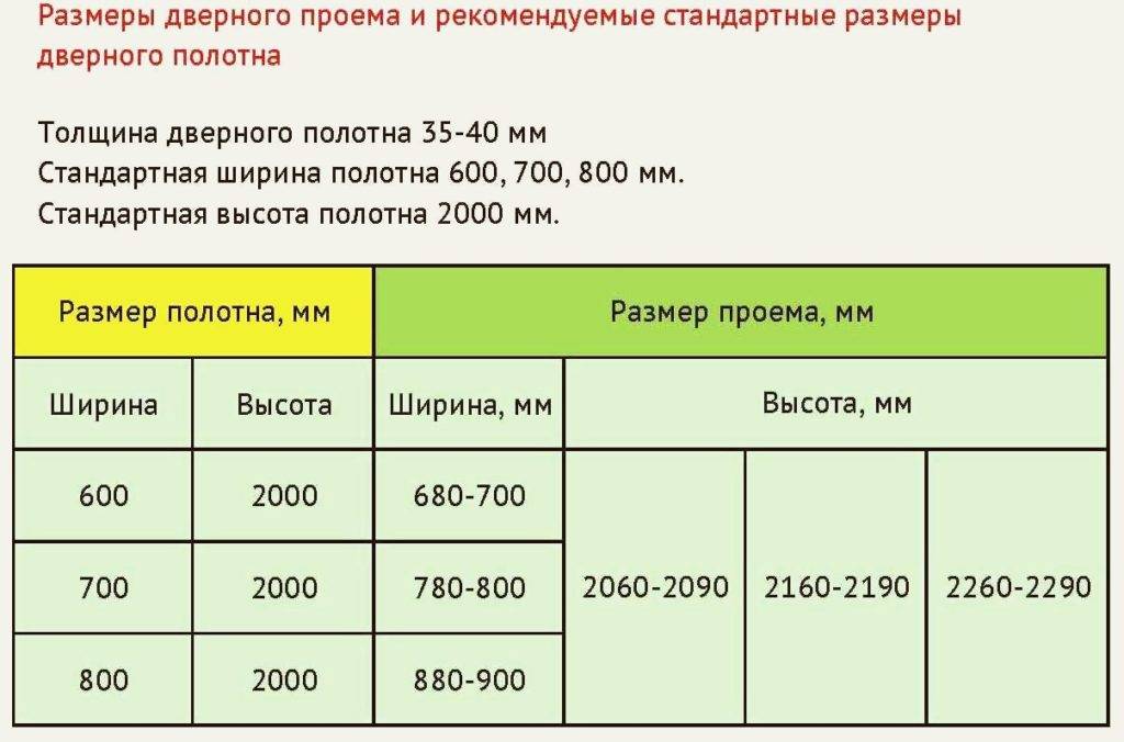 Размеры проемов, предусмотренные стандартом:
