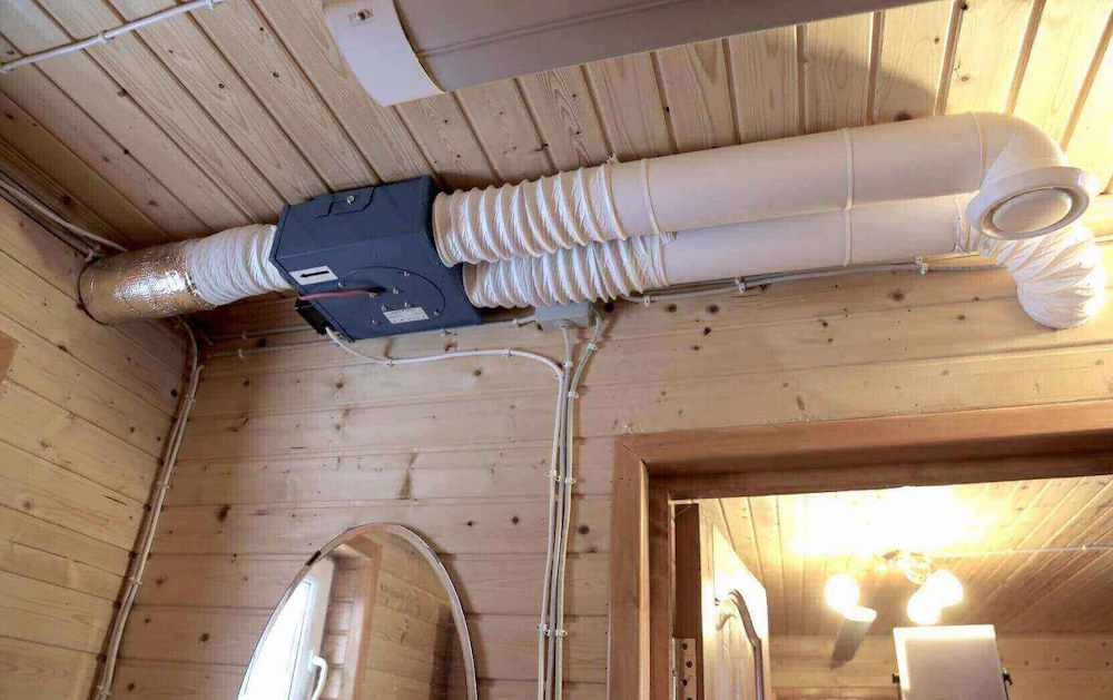 На уровне чердака отдельные воздуховоды объединяют в один канал и выводят через крышу на улицу либо подсоединяют к канальному вентилятору или рекуператору. Все отверстия с выводами каналов в стенах заделывают и герметизируют.