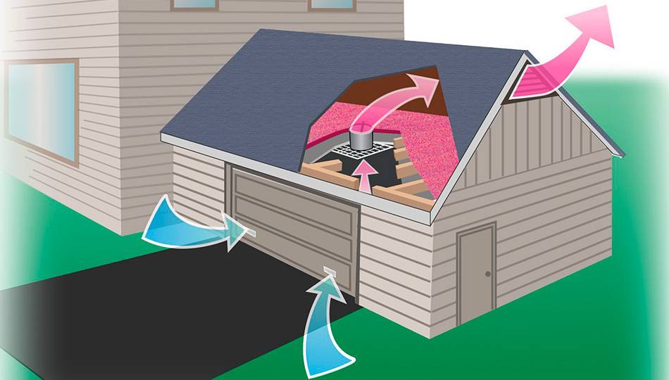 Для поддержания нормальных рабочих условий в гараже, хранящегося оборудования и машин необходима вентиляция, которая постоянно удаляет загрязненный воздух и подает вместо него свежий. Система вентиляции особенно важна в утепленных гаражах, где движение воздуха через конструкцию затруднено теплоизоляцией. Хорошо организованная выхлопная система будет своевременно удалять вредные летучие химические вещества, которые могут нанести вред здоровью владельцев. Вытяжная система гаража необходима для регулярной просушки конструкции, которая из-за разницы внешних и внутренних температур конденсируется в замкнутом пространстве. Система естественной вентиляции гаража. Система воздухообмена для изолированного гаража. Дренаж для владельцев. Вытяжные воздуховоды системы вентиляции