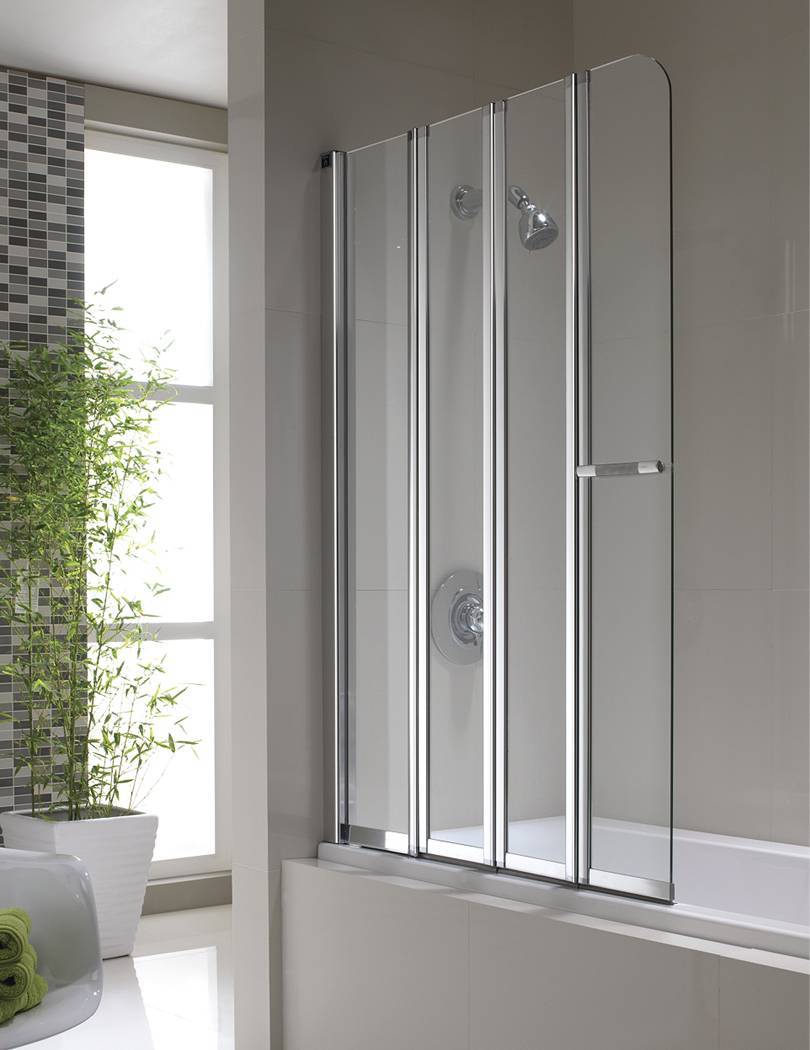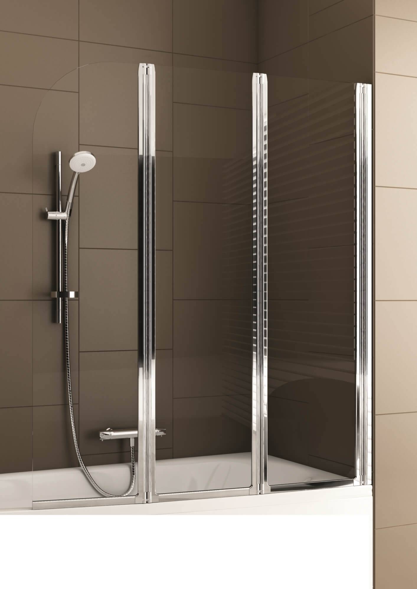 Один из проемов такой перегородки остается открытым при приеме душа. Фиксированные изделия с открытым сегментом подходят людям, которые чувствуют себя неуютно в замкнутом пространстве. Ограждающий экран располагается в той части ванны, где активно разбрызгиваются капли.