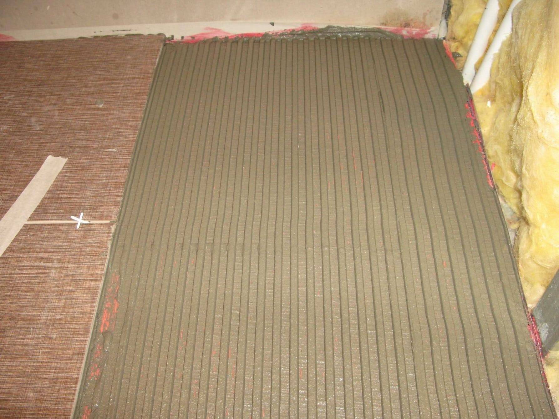 Для уменьшения толщины слоя можно сначала выровнять основу или наносить состав шпателем с меньшей высотой зубцов.