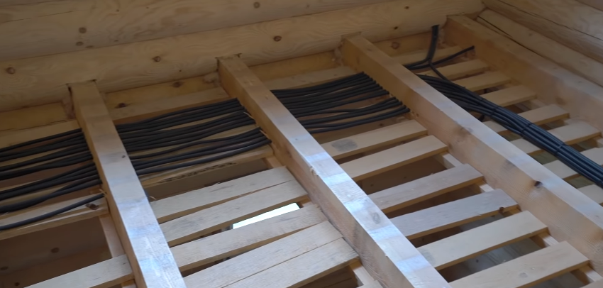 - Ничто не мешает демонтировать участки или заменить её, так как электропроводка в срубе на виду.