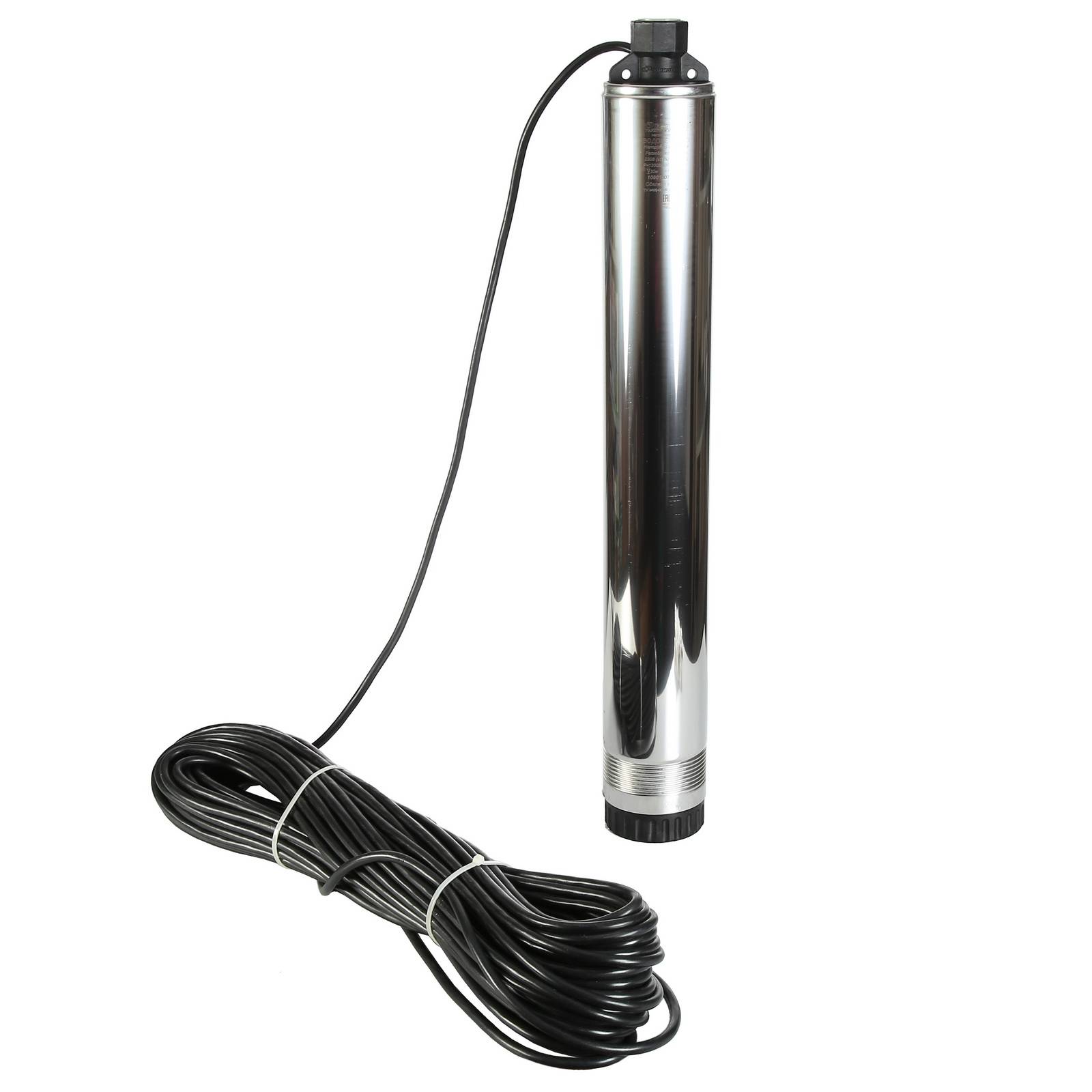 Электродвигатель агрегата расположен сверху. Такая компоновка позволила значительно уменьшить диаметр всего корпуса, а шнур питания вывести сверху. Благодаря этому размер водозаборной скважины также уменьшился. А это уже ощутимое снижение вложений на ее установку.