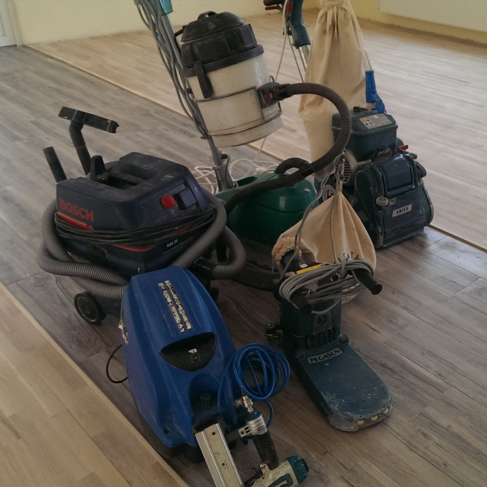- Мощный пылесос для очистки пола перед и после циклевки.