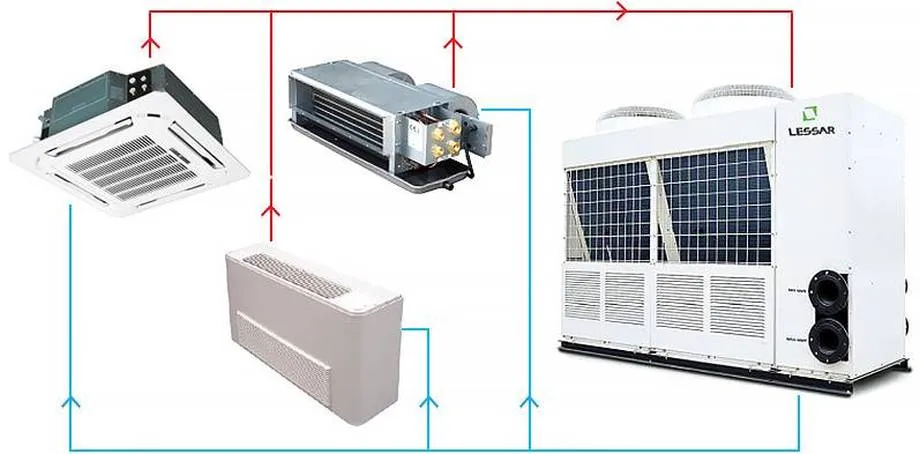 Кроме чиллера (чиллеров) и фанкойлов, в состав системы входит трубная разводка между ними, насосная станция (гидромодуль) и подсистема автоматического регулирования (автоматика).