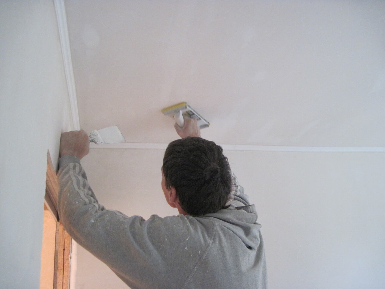 Последовательность работ при шпаклевке потолка выглядит следующим образом: