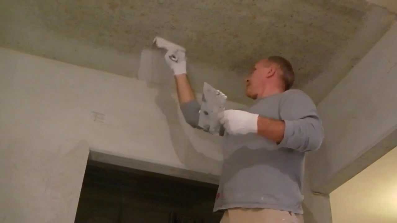 Для правильного нанесения на потолок приготовленного раствора, его следует распределять: