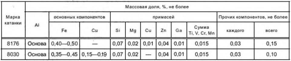 Таблица 6 – Химический состав сплавов 8176 и 8030 по ГОСТ Р 58019-2017