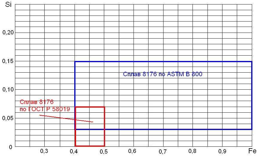 Рисунок 8 – Пределы содержания железа и кремния в сплаве 8176