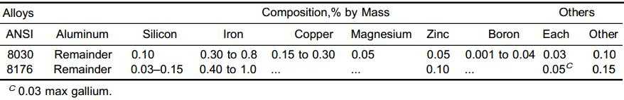 Таблица 4 – Сплавы 8030 и 8176 в ASTM B 800